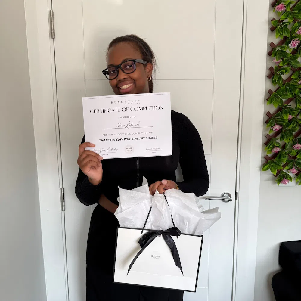 I had an amazing experience with beauty jay aesthetic I learnt how to best improve my French tips , how to best prepare the cuticle and perfect art designs I struggled with. She was so welcoming and kind answered all my questions made sure I understood what I was doing. I would definitely recommend her to anyone try to perfect there craft.